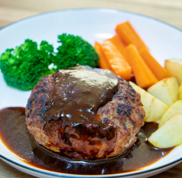 麸が肉汁を吸い込み、うま味を閉じ込める新感覚ハンバーグ。膨らむことでボリュームもアップします!